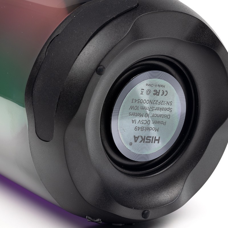 اسپیکر B49 برادر بزرگتر B44 از خانواده هیسکا است. اسپیکر B49 از توان خروجی 10 وات بهره میبرد. این میزان از توان خروجی مقدار بسیار خوبی برای یک اسپیکر بلوتوث به شمار میرود. اسپیکر B49 را میتوان به تلفنهمراه یا تبلت متصل کرد تا در جمعهای دوستانه بتوان از صدای آن لذت برد. این اسپیکر انرژی مورد نیاز خود را از طریق باتری داخلی قابل شارژ تامین میکند. به کمک این باتری میتوان تا 4 ساعت به پخش موسیقی پرداخت. همچنین نورپردازی RGB این دستگاه حس بهتری در کنار گوش دادن به موسیقی به شما القا میکند. و با استفاده از قابلیت TWS می توان همزمان دو دستگاه را به یکدیگر متصل نمود.